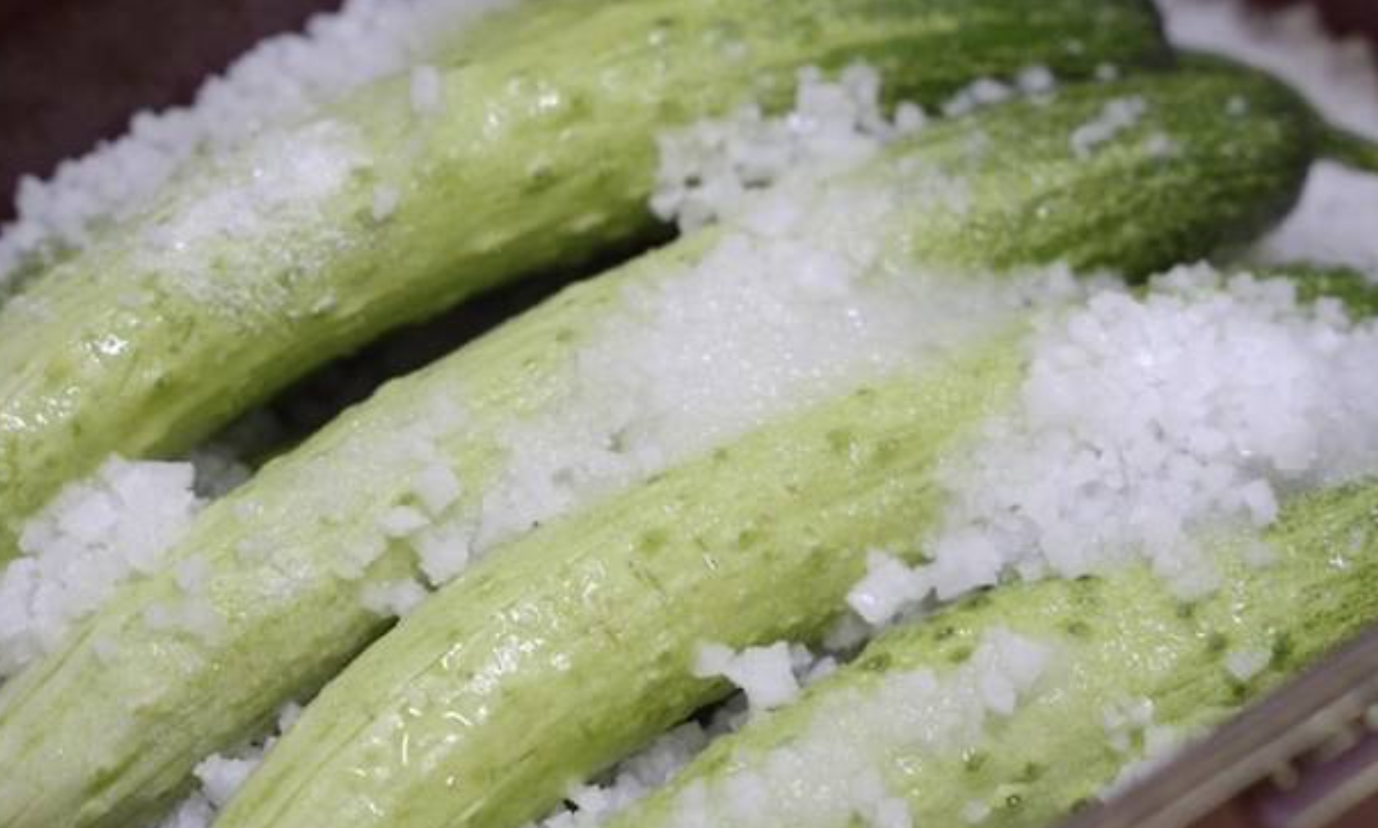 오이지 성공의 8할은 바로 이 단계에 달려있다고 해도 과언이 아닙니다. 오이 표면에 남아있는 불순물과 농약을 굵은소금이나 베이킹소다로 문질러 깨끗하게 씻어주세요.